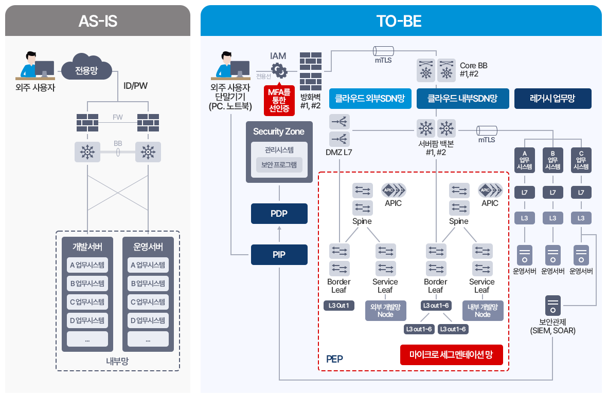 외부 인력 및 협력사 접근 환경에 대해 업무 단위별 접근 통제와 망 분리를 적용하여, 업무 효율을 유지하면서 내부 자산 보호 수준을 강화
